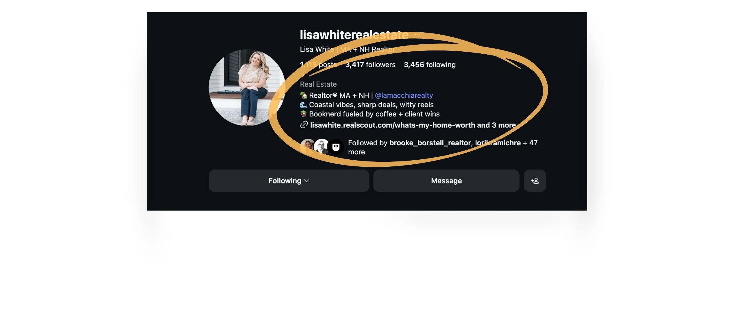 Lisa White came to Journi with 13+ years of experience and a sterling real world reputation — but her presence on social didn’t yet reflect the depth of trust and expertise she had built offline. Together, we transformed her agent personal brand into a cohesive, emotionally intelligent identity that connects with her “Seller Stone” ideal client persona through education, empathy, and authenticity that shines through her content. The result is a refined personal brand that feels unmistakably Lisa — polished, purposeful, and powerfully aligned with her core values.